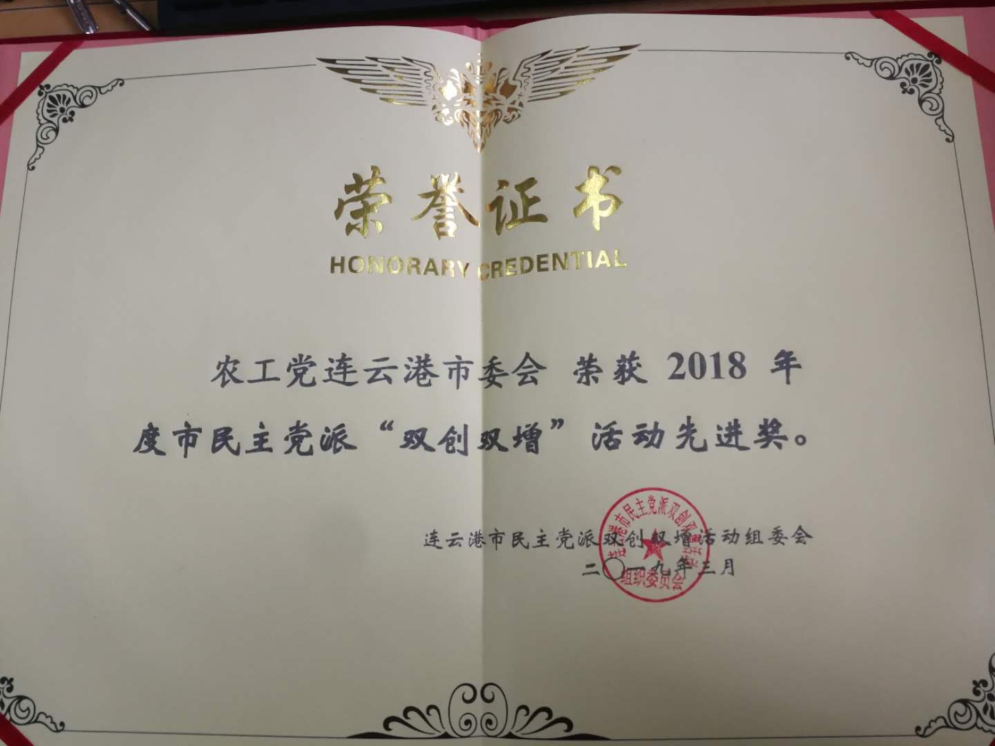 农工党连云港市委获得“双创双增”活动先进奖;东海总支、妇保院总支获“双创双增”活动先进基层组织;姜玲、于海营、张玉祥、穆丽获“双创双增”活动先进个人。