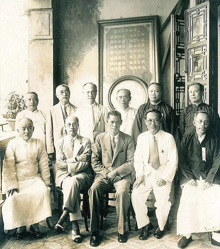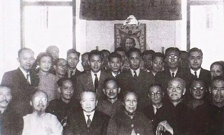 ▲1948年,中国国民党革命委员会成立大会,(坐立者左起)朱蕴山、柳亚子、蔡廷锴、李济深、张文、何香凝