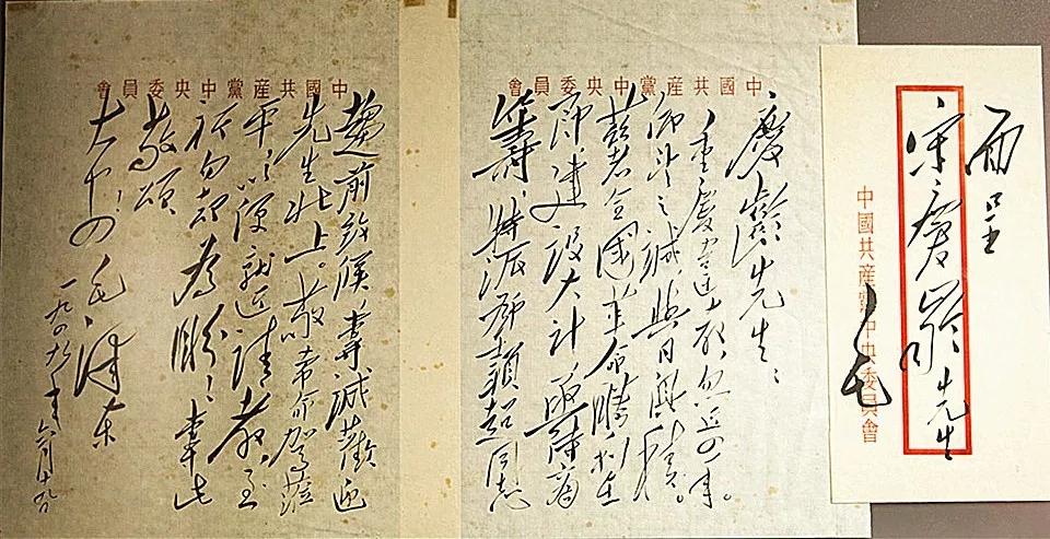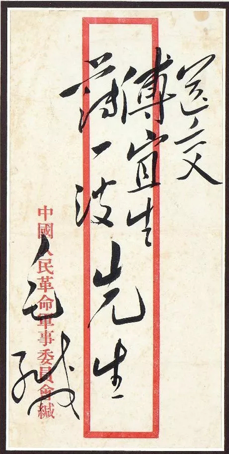 ▲1949年,毛泽东《致傅作义、薄一波公函封》