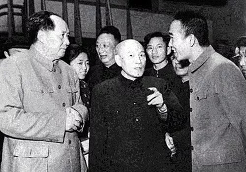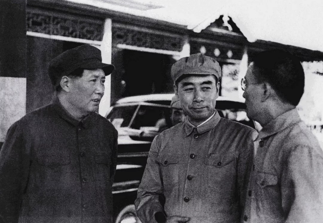 ▲1949年,毛泽东、周恩来与张治中在北平火车站月台交谈