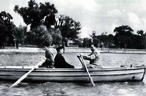 ▲1952年秋天,毛泽东亲自划船与程潜同游中南海