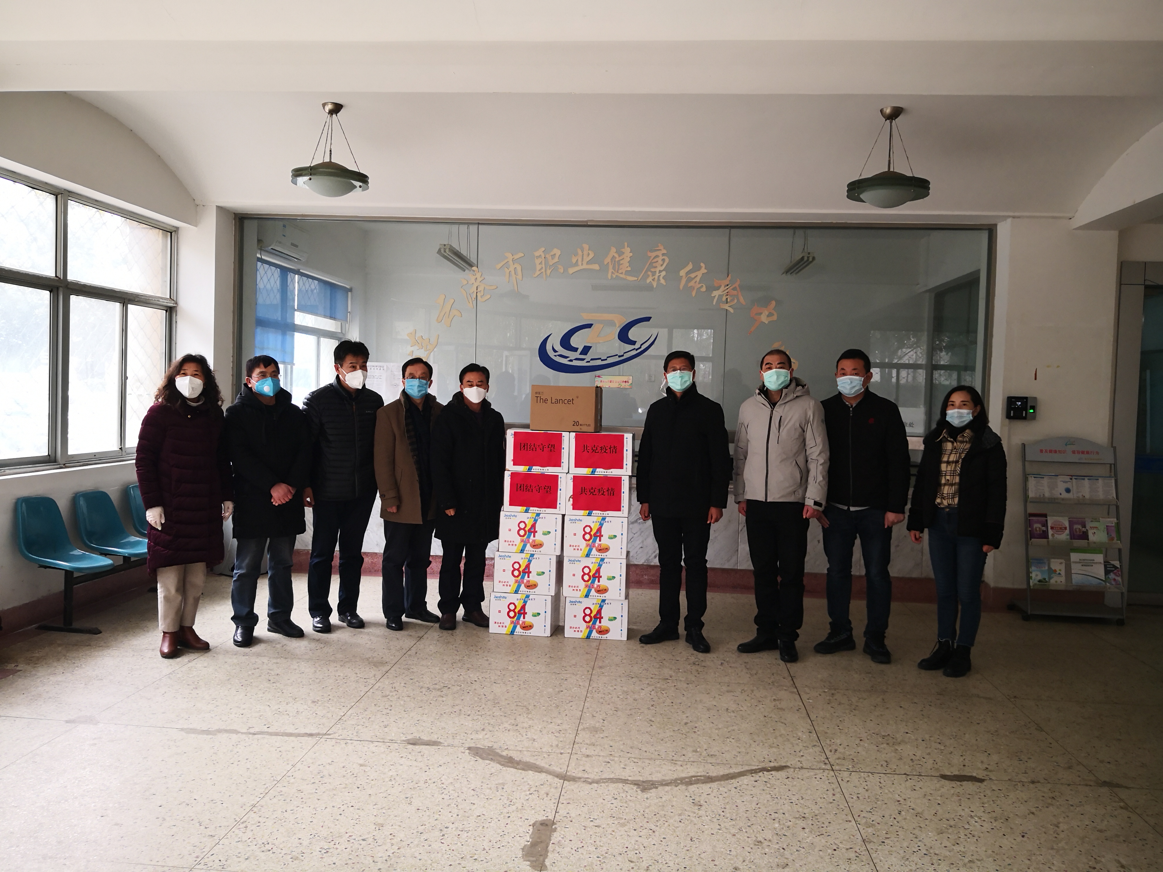 2月6日,农工党界别市政协委员前往市疾控中心,慰问了一线职工,并把慰问品送到了他们手中。疾控中心承担着全市现场流行病学调查、现场消毒水消杀、病人标本接收、标本新冠病毒实验室核酸检测等一系列重要工作。随着疫情不断发展,疾控中心物资消耗剧增,目前防护物资严重不足,市政协委员宋杰东、彭家启、姜玲、付凯得知消息后,多方联系,购得84消毒液10箱(750毫升,25瓶装)、免洗手消毒液1箱(473ml,25瓶装)共3150元的物资,及时送到了疾控中心一线员工手中。疾控中心张春道副主任和疾控支部李莉主任在捐赠现场解答了大家关于防护新型冠状病毒感染的肺炎的相关问题,前来捐赠政协委员对疾控工作人员表达了由衷的敬佩与谢意。李莉表示,在物资紧缺的情况下,政协委员捐赠的防护用品将直接用于近期的一线消杀,感谢政协委员们冒着雨雪及时将物资送达。